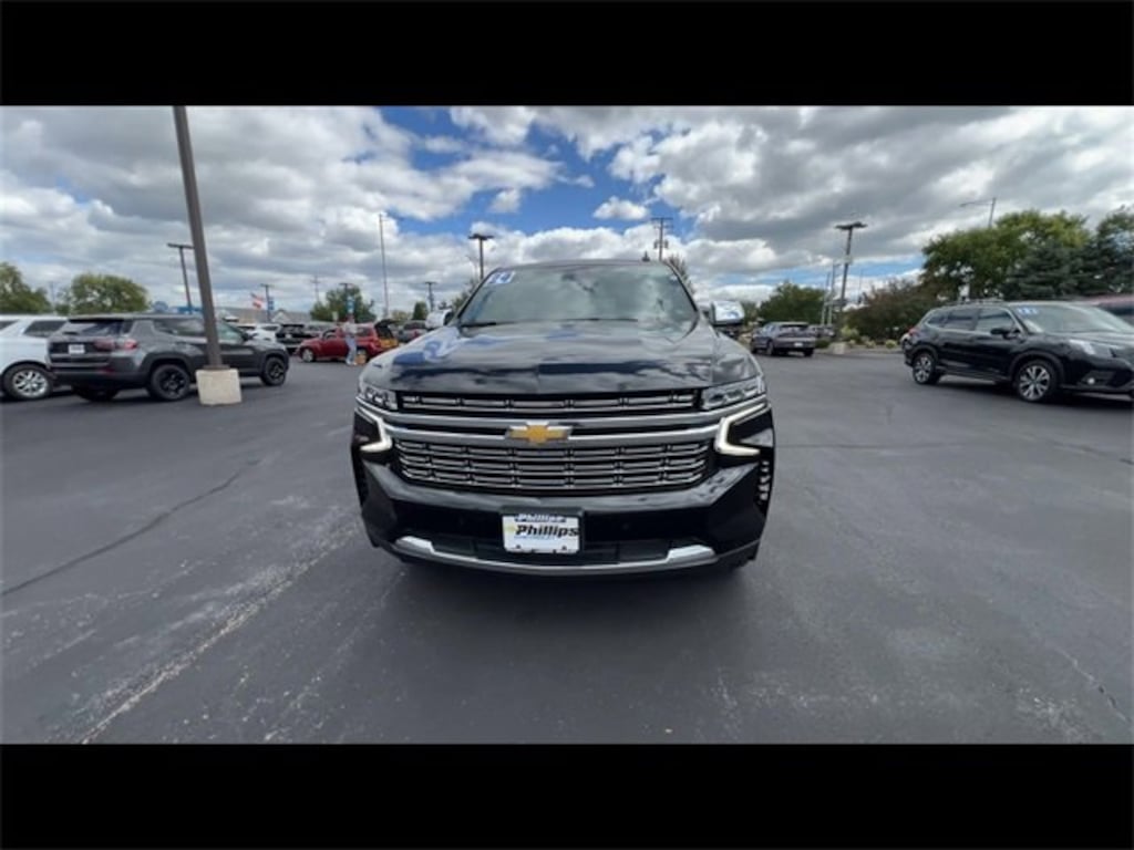 Low Miles, CarBravo Certified, 4WD, Leather Seats, 6.2L!, Max Trailering Package, Backup Camera, Remote Start, 8 Passenger Seating, Pwr Dr Seat, Forward Collision Alert, Head-Up Display, Navigation, Bose Audio, Side Blind Zone Alert, Rear Cross Traffic Alert, Lane Departure Warning, Lane Change Alert, Lane Keep Assist, Front & Rear Park Assist, Heated Seats, Heated Steering Wheel, Ventilated Seats, Memory Seating, Power Liftgate, Apple CarPlay, 20 Wheels, Carfax Buyback Guarantee, Tahoe Premier, 4D Sport Utility, EcoTec3 6.2L V8, 10-Speed Automatic with Overdrive, 4WD, Black, Jet Black Leather, 12-Way Power Driver & Passenger Seat Adjusters, 15 Diagonal Multi-Color Head-Up Display, 1st & 2nd Row Color-Keyed Carpeted Floor Mats, 2-Speed Active Electronic AutoTrac Transfer Case, 20 x 9 Polished Aluminum Wheels, 2nd Row Pwr Release 60/40 Split-Folding Bench Seat, 3.23 Rear Axle Ratio, 3rd Row 60/40 Power-Folding Split-Bench Seat, 4-Wheel Disc Brakes, ABS brakes, Adaptive suspension, Advanced Trailering Package, AM/FM radio: SiriusXM with 360L, Apple CarPlay/Android Auto, Auto High-beam Headlights, Auto-dimming door mirrors, Auto-Dimming Inside Rear-View Mirror, Auto-leveling suspension, Automatic temperature control, Bose 10-Speaker Centerpoint Surround Audio Sys Ft, Brake assist, Bright Front & Rear Door Sill Plates, Bumpers: body-color, Chrome Door Handles w/Body-Color Strip, Chrome Mirror Caps, Color-Keyed Carpeting Floor Covering, Compass, Driver & Front Outboard Passenger Airbags, Driver & Front Passenger Heated & Ventilated Seats, Driver door bin, Driver vanity mirror, Dual Exhaust System, Dual front impact airbags, Dual front side impact airbags, Electronic Stability Control, Emergency communication system: OnStar and Chevrolet connected services capable, Engine Block Heater, Enhanced Display & Alert Package, Enhanced Driver Information Center, Extra Capacity Cooling System, Floor Console, Four wheel independent suspension, Front anti-roll bar, Front Bucket Seats, Front dual zone A/C, Front High-Back Reclining Bucket Seats, Front reading lights, Fully automatic headlights, Garage door transmitter, Hands-Free Rear Power Programmable Liftgate, HD Surround Vision, Heated 2nd Row Outboard Seats, Heated door mirrors, Heated Driver & Front Passenger Seats, Heated Steering Wheel, Hill Descent Control, Hitch View w/Pan/Zoom Image Adjustment, Illuminated entry, Inside Rearview Auto-Dimming Rear Camera Mirror, Integrated Trailer Brake Controller, Lane Change Alert w/Side Blind Zone Alert, LED Daytime Running Lamps, Low tire pressure warning, Magnetic Ride Control Suspension, Max Trailering Package, Memory seat, Memory Settings, Navigation System, Occupant sensing airbag, Outside Heated Power-Adjustable Mirrors, Outside temperature display, Overhead airbag, Overhead console, Passenger door bin, Passenger vanity mirror, Perforated Leather Seat Trim, Power door mirrors, Power Liftgate, Power Release 2nd Row Bucket Seats, Power Tilt & Telescopic Steering Column, Preferred Equipment Group 1LZ, Premium audio system: Chevrolet Infotainment 3 Premium, Rain sensing wipers, Rear air conditioning, Rear anti-roll bar, Rear Camera Mirror Washer, Rear Cross Traffic Alert, Rear Pedestrian Alert, Rear reading lights, Rear window defroster, Rear window wiper, Remote Start, Safety Alert Seat, Security system, SiriusXM w/360L, Smart Trailer Integration Indicator, Speed control, Speed-sensing steering, Spoiler, Steering wheel memory, Steering wheel mounted audio controls, Tachometer, Telescoping steering wheel, Tilt steering wheel, Traction control, Trailer Side Blind Zone Alert, Trip computer, Turn signal indicator mirrors, Universal Home Remote, Variably intermittent wipers, Voltmeter, Wireless Charging, Wrapped Steering Wheel. 2024 Chevrolet Tahoe Black Premier 4D Sport Utility 4WD 10-Speed Automatic with Overdrive 14/18 City/Highway MPG EcoTec3 6.2L V8