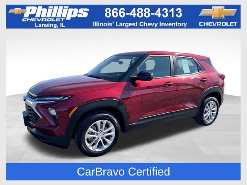 CarBravo Certified, ONE Owner!, No Added Cert. Fees, Apple CarPlay, Keyless Entry, Forward Collision Alert, Backup Camera, BLUETOOTH, Power Windows/Locks, PUSH BUTTON START!, Lane Departure Warning, Lane Keep Assist, Cruise Control, Carfax Buyback Guarantee, TrailBlazer LS, 4D Sport Utility, 1.2L Ecotec Turbo DOHC DI w/VVT, CVT, FWD, Crimson Metallic, Black Cloth, 1 Type-A & 1 Type-C USB Ports, 11 Diagonal HD Color Touchscreen, 4-Speaker Audio System Feature, 4-Way Manual Front Passenger Seat Adjuster, 4-Wheel Disc Brakes, 5.45 Final Drive Axle Ratio, 6-Way Manual Driver Seat Adjuster, ABS brakes, AM/FM radio: SiriusXM, Auto High-beam Headlights, Brake assist, Bumpers: body-color, Chevrolet Connected Access Capable, Cloth Seat Trim, Compass, Delay-off headlights, Driver door bin, Driver vanity mirror, Dual front impact airbags, Dual front side impact airbags, Electronic Stability Control, Emergency communication system: OnStar and Chevrolet connected services capable, Exterior Parking Camera Rear, Flat-Folding Front Passenger Seatback, Front & Rear All-Weather Floor Liners (LPO), Front anti-roll bar, Front Center Armrest, Front reading lights, Front wheel independent suspension, Fully automatic headlights, Illuminated entry, Knee airbag, Low tire pressure warning, Occupant sensing airbag, Overhead airbag, Overhead console, Panic alarm, Passenger door bin, Passenger vanity mirror, Power door mirrors, Preferred Equipment Group 1LS, Rear side impact airbag, Rear window defroster, Rear window wiper, Remote keyless entry, Ride & Handling Suspension, Security system, Speed control, Split folding rear seat, Spoiler, Steering wheel mounted audio controls, Tachometer, Telescoping steering wheel, Tilt steering wheel, Traction control, Trip computer, Variably intermittent wipers, Wheels: 17 Silver-Painted Aluminum, Wireless Apple CarPlay/Android Auto. 2024 Chevrolet TrailBlazer Crimson Metallic LS 4D Sport Utility FWD CVT 29/31 City/Highway MPG 1.2L Ecotec Turbo DOHC DI w/VVT