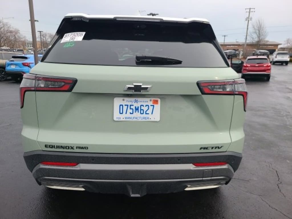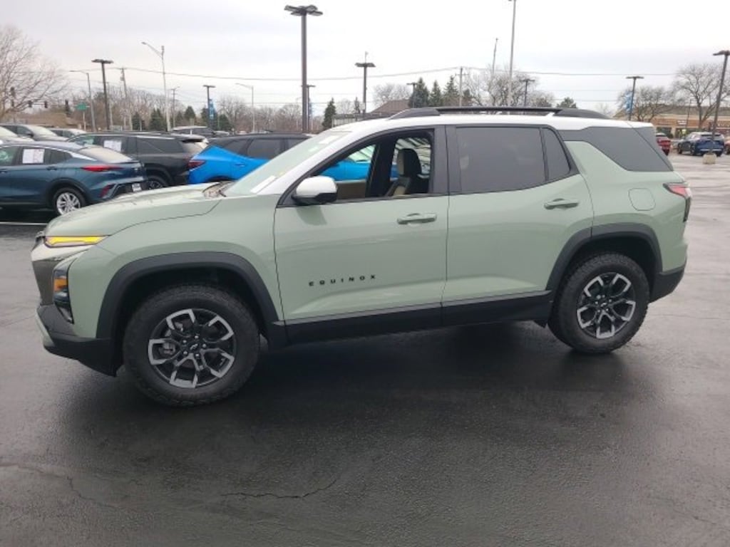 Low Miles, CarBravo Certified, AWD, Backup Camera, Remote Start, Pwr Dr Seat, Forward Collision Alert, Navigation, Side Blind Zone Alert, Rear Cross Traffic Alert, Lane Departure Warning, Lane Change Alert, Lane Keep Assist, Rear Park Assist, Adaptive Cruise Control, Heated Seats, Heated Steering Wheel, Ventilated Seats, Memory Seating, Power Liftgate, Apple CarPlay, Aluminum Wheels, Carfax Buyback Guarantee, Equinox ACTIV, 4D Sport Utility, 1.5L DOHC, 8-Speed Automatic, AWD, Cacti Green, Maple Sugar w/Sueded Microfiber Seat Trim, 2-Way Power Driver Lumbar Control Seat Adjuster, 4-Wheel Disc Brakes, 6 Speakers, ABS brakes, Air Conditioning, AM/FM radio: SiriusXM, Auto High-beam Headlights, Automatic temperature control, Brake assist, Bumpers: body-color, Compass, Convenience Package III, Driver 8-Way Power Seat Adjuster, Driver door bin, Driver vanity mirror, Dual front impact airbags, Dual front side impact airbags, Electronic Stability Control, Emergency communication system: OnStar and Chevrolet connected services capable, Four wheel independent suspension, Front anti-roll bar, Front Bucket Seats, Front Center Armrest, Front dual zone A/C, Front Fog Lamps, Front Passenger 2-Way Power Lumbar Seat Adjuster, Front Passenger 8-Way Power Seat Adjuster, Front reading lights, Fully automatic headlights, Garage door transmitter, HD Surround Vision, Heated door mirrors, Heated Driver & Front Passenger Seats, Heated Rear Outboard Seating Positions, Heated steering wheel, Illuminated entry, Low tire pressure warning, Memory Settings, Navigation System, Occupant sensing airbag, Outside temperature display, Overhead airbag, Overhead console, Passenger door bin, Passenger vanity mirror, Power door mirrors, Power driver seat, Power Liftgate, Preferred Equipment Group KDZ, Premium audio system: Chevrolet Infotainment 3 Plus, Radio data system, Radio: 11.3 Diagonal Advanced Color LCD Display, Rain sensing wipers, Rear anti-roll bar, Rear Camera Mirror Washer, Rear Pedestrian Alert, Rear reading lights, Rear seat center armrest, Rear window defroster, Rear window wiper, Remote keyless entry, Safety & Technology Package, Security system, SiriusXM, Speed control, Speed-sensing steering, Split folding rear seat, Spoiler, Steering wheel mounted audio controls, Sueded Microfiber Seat Trim, Summit White Mirror Caps, Summit White Roof, Tachometer, Telescoping steering wheel, Tilt steering wheel, Traction control, Traffic Sign Recognition, Trip computer, Universal Home Remote Non-Functional, Variably intermittent wipers, Ventilated Driver Seat, Ventilated Front Passenger Seat, Wheels: 17 Dark Android Machined-Face Aluminum. 2025 Chevrolet Equinox Cacti Green ACTIV 4D Sport Utility AWD 8-Speed Automatic 24/29 City/Highway MPG 1.5L DOHC