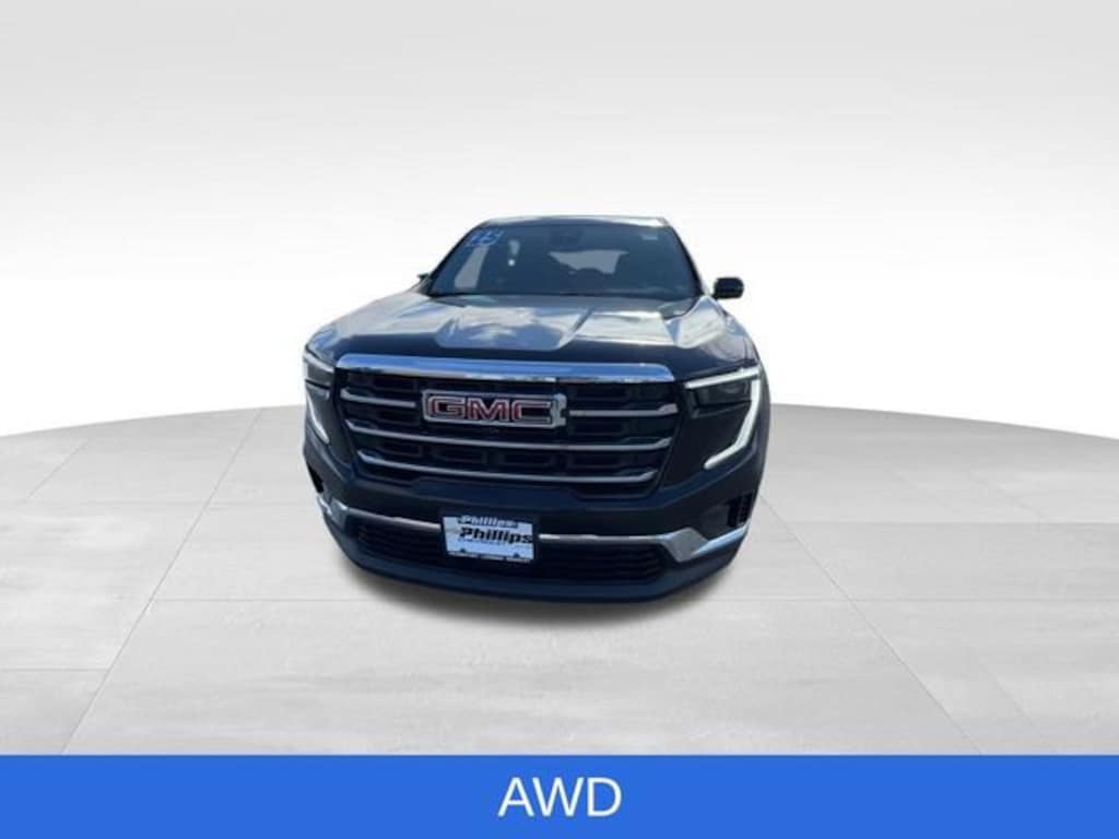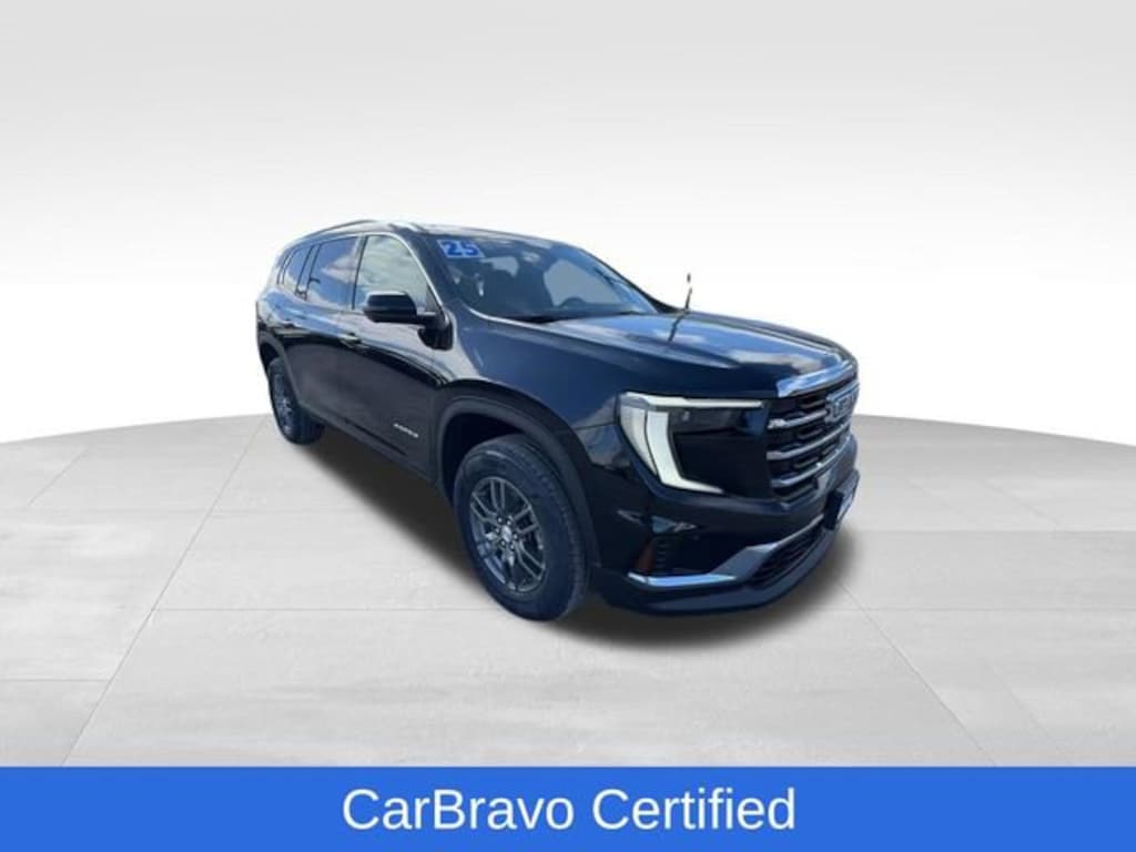 CarBravo Certified, AWD, Backup Camera, Remote Start, 8 Passenger Seating, Pwr Dr Seat, Forward Collision Alert, Navigation, Bose Audio, Side Blind Zone Alert, Rear Cross Traffic Alert, Lane Departure Warning, Lane Change Alert, Lane Keep Assist, Rear Park Assist, Heated Seats, Heated Steering Wheel, Power Liftgate, Apple CarPlay, Aluminum Wheels, Carfax Buyback Guarantee, Acadia Elevation, 4D Sport Utility, 2.5L DOHC, 8-Speed Automatic, AWD, Ebony Twilight Metallic, After Dark w/Cloth Seat Trim, 18 x 7.5 Aluminum Wheels, 2-Way Driver Power Lumbar Seat Adjuster, 3rd row seats: split-bench, 4-Way Manual Front Passenger Seat Adjuster, 4-Wheel Disc Brakes, 8-Passenger Seating (2-3-3 Seating Configuration), 8-Way Power Driver Seat Adjuster, ABS brakes, Air Conditioning, AM/FM radio: SiriusXM with 360L, Apple CarPlay/Android Auto, Auto High-beam Headlights, Auto-dimming Rear-View mirror, Automatic temperature control, Bodyside moldings, Bose Premium 12-Speaker System with Sub-Woofer, Brake assist, Bumpers: body-color, Cloth Seat Trim, Compass, Driver door bin, Driver vanity mirror, Dual front impact airbags, Dual front side impact airbags, Electronic Stability Control, Emergency communication system: OnStar Services capable, Exterior Parking Camera Rear, Four wheel independent suspension, Front anti-roll bar, Front Bucket Seats, Front Center Armrest, Front dual zone A/C, Front fog lights, Front reading lights, Fully automatic headlights, Heated door mirrors, Heated Driver and Front Passenger Seats, Heated steering wheel, Illuminated entry, Leather steering wheel, Low tire pressure warning, Navigation System, Occupant sensing airbag, Outside temperature display, Overhead airbag, Overhead console, Passenger door bin, Passenger vanity mirror, Power door mirrors, Power Liftgate, Preferred Equipment Group 4SD, Radio data system, Radio: 15 Diagonal Premium GMC Infotainment System, Rear air conditioning, Rear anti-roll bar, Rear reading lights, Rear seat center armrest, Rear side impact airbag, Rear window defroster, Rear window wiper, Remote keyless entry, Security system, SiriusXM with 360L, Speed control, Speed-sensing steering, Split folding rear seat, Spoiler, Sport steering wheel, Steering wheel mounted audio controls, Tachometer, Telescoping steering wheel, Tilt steering wheel, Traction control, Trip computer, Turn signal indicator mirrors, Variably intermittent wipers, Voltmeter. 2025 GMC Acadia Ebony Twilight Metallic Elevation 4D Sport Utility AWD 8-Speed Automatic 19/24 City/Highway MPG 2.5L DOHC
