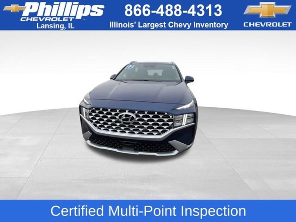 CarBravo Certified, No Added Cert. Fees, Certified Multi-Point Inspection, AWD!, NEW Tires!, Apple CarPlay, Forward Collision Alert, Side Blind Zone Alert, Rear Cross Traffic Alert, Backup Camera, BLUETOOTH, Power Windows/Locks, Power Seating, PUSH BUTTON START!, 18 WHEELS!, Cruise Control, Carfax Buyback Guarantee, Santa Fe SEL, 4D Sport Utility, 2.5L I4, 8-Speed Automatic with SHIFTRONIC, AWD, Stormy Sea, Black w/YES Essentials Stain-Resistant Cloth Seat Trim, 18 x 7.5J Alloy Wheels, 4-Wheel Disc Brakes, 6 Speakers, ABS brakes, Air Conditioning, Apple CarPlay & Android Auto, Auto High-beam Headlights, Brake assist, Bumper Applique, Bumpers: body-color, Driver door bin, Driver vanity mirror, Dual front impact airbags, Dual front side impact airbags, Electronic Stability Control, Emergency communication system, Exterior Parking Camera Rear, Four wheel independent suspension, Front anti-roll bar, Front Bucket Seats, Front Center Armrest, Front reading lights, Fully automatic headlights, Heated door mirrors, Heated Front Bucket Seats, Illuminated entry, Low tire pressure warning, Mudguards, Occupant sensing airbag, Option Group 01, Outside temperature display, Overhead airbag, Overhead console, Panic alarm, Passenger door bin, Passenger vanity mirror, Power door mirrors, Power driver seat, Radio: AM/FM Display Audio, Rear anti-roll bar, Rear seat center armrest, Rear window defroster, Rear window wiper, Remote keyless entry, Security system, Speed control, Speed-sensing steering, Split folding rear seat, Spoiler, Steering wheel mounted audio controls, Tachometer, Telescoping steering wheel, Tilt steering wheel, Traction control, Trip computer, Variably intermittent wipers, YES Essentials Stain-Resistant Cloth Seat Trim. 2022 Hyundai Santa Fe Stormy Sea SEL 4D Sport Utility AWD 8-Speed Automatic with SHIFTRONIC 22/25 City/Highway MPG 2.5L I4