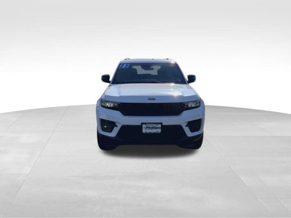 CarBravo Certified, 4WD, Low Miles, Sunroof, Backup Camera, Remote Start, Pwr Dr Seat, Forward Collision Alert, Side Blind Zone Alert, Rear Cross Traffic Alert, Adaptive Cruise Control, Heated Seats, Heated Steering Wheel, Power Liftgate, Apple CarPlay, Carfax Buyback Guarantee, Grand Cherokee Altitude X, 4D Sport Utility, 3.6L V6 24V VVT, 8-Speed Automatic, 4WD, Bright White Clearcoat, Global Black w/Capri Leather/Suede Seats, 115V Auxiliary Power Outlet, 4-Wheel Disc Brakes, 6 Speakers, ABS brakes, Altitude X, AM/FM radio: SiriusXM, Anti-whiplash front head restraints, Black Headliner, Brake assist, Capri Leatherette/Suede Seats, Compass, Driver vanity mirror, Dual front impact airbags, Dual front side impact airbags, Electronic Stability Control, Emergency communication system, Four wheel independent suspension, Front anti-roll bar, Front Bucket Seats, Front Center Armrest w/Storage, Front dual zone A/C, Front reading lights, Fully automatic headlights, Gloss Black Exterior Accents, Heated door mirrors, Heated Front Seats, Heated Steering Wheel, Illuminated entry, Knee airbag, Low tire pressure warning, Normal Duty Suspension, Occupant sensing airbag, Outside temperature display, Overhead airbag, Overhead console, Panic alarm, ParkView Rear Back-Up Camera, Passenger door bin, Passenger vanity mirror, Power door mirrors, Power driver seat, Power Liftgate, Power steering, Power Sunroof, Power windows, Quick Order Package 23M Altitude X, Radio data system, Radio: Uconnect 5 with 8.4 Display, Rain Sensitive Windshield Wipers, Rear anti-roll bar, Rear reading lights, Rear window defroster, Rear window wiper, Remote keyless entry, Remote Start System, Security system, Selectable Tire Fill Alert, Speed control, Split folding rear seat, Spoiler, Steering wheel mounted audio controls, Tachometer, Telescoping steering wheel, Tilt steering wheel, Traction control, Trip computer, Voltmeter, Wheels: 18 x 8 Fully Painted Aluminum 1, Wireless Charging Pad. 2025 Jeep Grand Cherokee Bright White Clearcoat Altitude X 4D Sport Utility 4WD 8-Speed Automatic 19/26 City/Highway MPG 3.6L V6 24V VVT