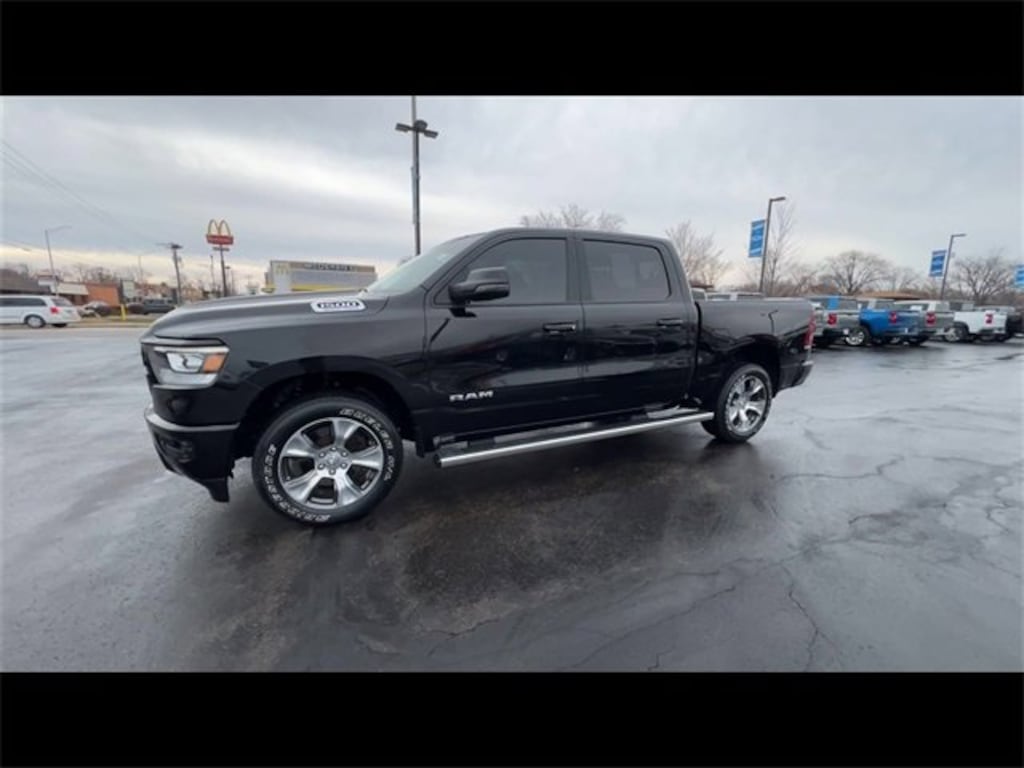 CarBravo Certified, ONE Owner!, Accident FREE, No Added Cert. Fees, 4WD!, Navigation, Heated Seats, Heated Steering Wheel, Apple CarPlay, Keyless Entry, Rear Cross Traffic Alert, Backup Camera, BLUETOOTH, Power Windows/Locks, Power Seating, PUSH BUTTON START!, HARMAN/KARDON AUDIO, 20 Wheels!, Power Adjustable Pedals, Remote Start, Rear Park Assist, Cruise Control, Carfax Buyback Guarantee, LEVEL B EQUIPMENT GROUP, SPORT APPEARANCE GROUP, 1500 Laramie, 4D Crew Cab, HEMI 5.7L V8 Multi Displacement VVT eTorque, 8-Speed Automatic, 4WD, Diamond Black Crystal Pearlcoat, Black Leather, 12 Touchscreen Display, 2nd Row In Floor Storage Bins, 3 Rear Seat Head Restraints, 3.21 Rear Axle Ratio, 4 Way Front Headrests, 4-Wheel Disc Brakes, 48V Belt Starter Generator, 4G LTE Wi-Fi Hot Spot, ABS brakes, Adjustable pedals, Anti-Spin Differential Rear Axle, Apple CarPlay, Apple CarPlay/Android Auto, Auto High Beam Headlamp Control, Auto-dimming door mirrors, Auto-Dimming Exterior Driver Mirror, Auto-dimming Rear-View mirror, Black Interior Accents, Blind Spot & Cross Path Detection, Body Color Exterior Mirrors, Body Color Front Bumper, Body Color Premium Power Mirrors, Body Color Rear Bumper w/Step Pads, Brake assist, Bumpers: chrome, Chrome Exterior Mirrors, Class IV Receiver Hitch, Compass, Connected Travel & Traffic Services, Connectivity - US/Canada, Convex Wide-Angle Exterior Mirror Insert, Delay-off headlights, Disassociated Touchscreen Display, Driver door bin, Driver Seat Memory, Driver vanity mirror, Dual front impact airbags, Dual front side impact airbags, Electric Shift-On-Demand Transfer Case, Electronic Stability Control, Exterior Mirrors Courtesy Lamps, Exterior Mirrors w/Heating Element, Exterior Mirrors w/Memory, Exterior Mirrors w/Supplemental Signals, Foam Bottle Insert (Door Trim Panel), For Details, Visit DriveUconnect.com, For More Info, Call 800-643-2112, Front anti-roll bar, Front Center Armrest w/Storage, Front Door Accent Lighting, Front fog lights, Front LED Fog Lamps, Front reading lights, Front Seat Back Map Pockets, Front wheel independent suspension, Fully automatic headlights, Garage door transmitter, Global Telematics Box Module (TBM), Google Android Auto, GPS Antenna Input, GPS Navigation, Grille Surround 3 Body Color Tex 2 Black, harman/kardon 19 Speaker Premium Sound, HD Radio, Heated door mirrors, Heated Front Seats, Heated Steering Wheel, Illuminated entry, Integrated Center Stack Radio, Integrated Voice Command w/Bluetooth, Laramie Level B Equipment Group, Leather steering wheel, Leather Trim 40/20/40 Bench Seat, LED Reflector Headlamps, Low tire pressure warning, Memory seat, Occupant sensing airbag, Outside temperature display, Overhead airbag, Overhead console, Panic alarm, ParkSense Front/Rear Park Assist w/Stop, ParkSense Front/Rear Park Assist w/Stop (DISC), ParkView Rear Back-Up Camera, Passenger door bin, Passenger vanity mirror, Pedal memory, Power 2-Way Driver Lumbar Adjust, Power 2-Way Passenger Lumbar Adjust, Power 8-Way Driver & Passenger Seats, Power door mirrors, Power driver seat, Power passenger seat, Power-Folding Mirrors, Quick Order Package 27H Laramie, Radio: Uconnect 5 Nav w/12.0 Display, Rain Sensitive Windshield Wipers, RAM Grille Badge - Chrome, Rear anti-roll bar, Rear Door Accent Lighting, Rear Power Sliding Window, Rear seat center armrest, Rear step bumper, Rear Underseat Compartment Storage, Rear Wheelhouse Liners, Rear Window Defroster, Remote keyless entry, Remote Tailgate Release, Security system, SiriusXM Radio Service, SiriusXM w/360L, Speed control, Split folding rear seat, Sport Appearance Package, Sport Decal, Sport Hood Delete, Sport Performance Hood, Steering wheel mounted audio controls, Tachometer, Telescoping steering wheel, Tilt steering wheel, Traction control, Trailer Brake Control, Trip computer, Turn signal indicator mirrors, USB Host Flip, Ventilated Front Seats, Ventilated front seats, Voltmeter, Wheel to Wh